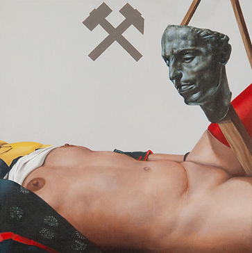 Throughout Robert Dandarov’s paintings lingers a continuous, poetic processing of people’s darker yet delicate inner sphere by means of mythology, symbolism, playfulness, and art history. The heavy burden his paintings seem to bear is, with a sense of humour, passed on to the viewer who needs a chair to unpack the many layers Dandarov has hidden within the rhythm of his works. Similar to an ominous movie, his paintings carry an unbearable suspense, like a chronicle of a ghastly occurrence foretold, albeit with a whimsical undertone. Image upon image, this artist’s surfaces tell us stories without a timeline, bringing history and fairytales to our present day through his sophisticated understanding of metaphors and symbols.